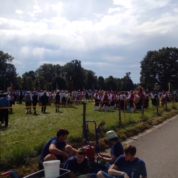 Morgens um 8:30 Uhr fuhren akive, wie passive Mitglieder, zusammen nach Eching, um dort mit Fahne am Kirchenzug und dem ökumenischen Festgottesdienst am Sportplatz teilzunehmen.