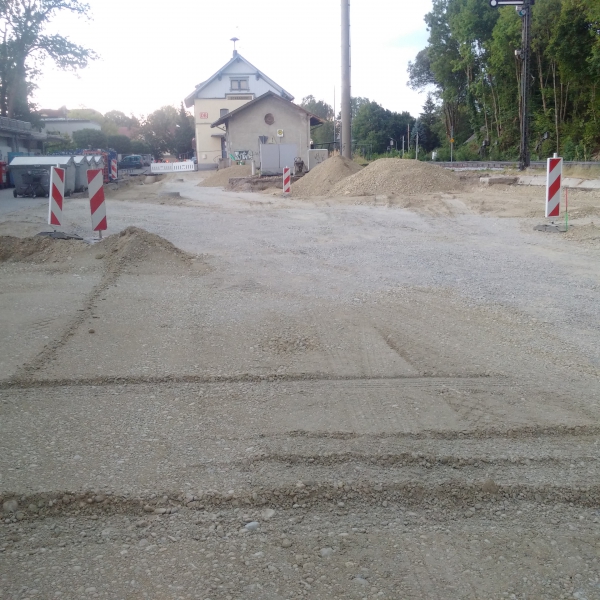 Draussen vor dem Feuerwehrhaus sind noch die Erdarbeiten in vollem Gange, um bald mit der neuen Straßenführung