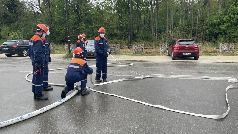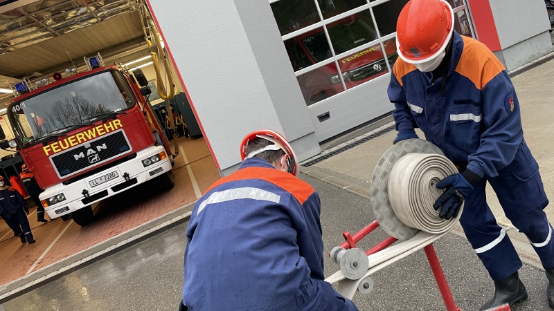 Drei Trupps, ein Melder und ein „Maschinist“ konnten die Abläufe des Löschaufbaus üben und ein Gefühl für den Umgang mit den Gerätschaften bekommen.