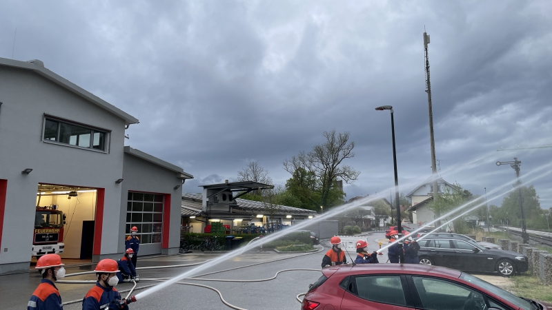 Die Feuerwehranwärter zeigten großen Einsatz und ließen sich selbst durch Regen nicht abhalten.