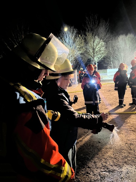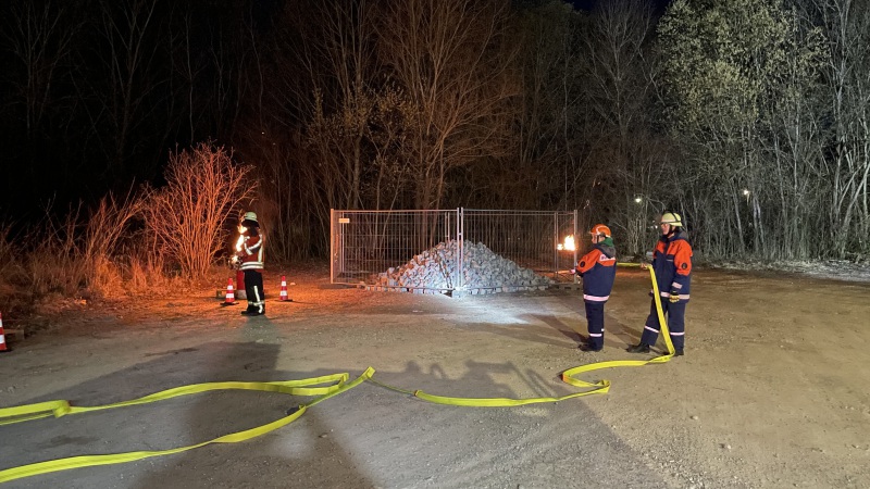Die Jugendlichen unserer Jugendabteilung konnten heute Abend an vorbereiteten Feuerstellen üben zu löschen und wie das Strahlrohr einzusetzen ist.