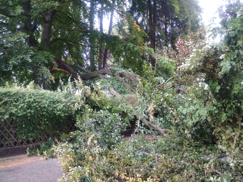 An der Seepromenade ist ein Teil eines Baum abgebrochen und auf die Seestraße gefallen.
